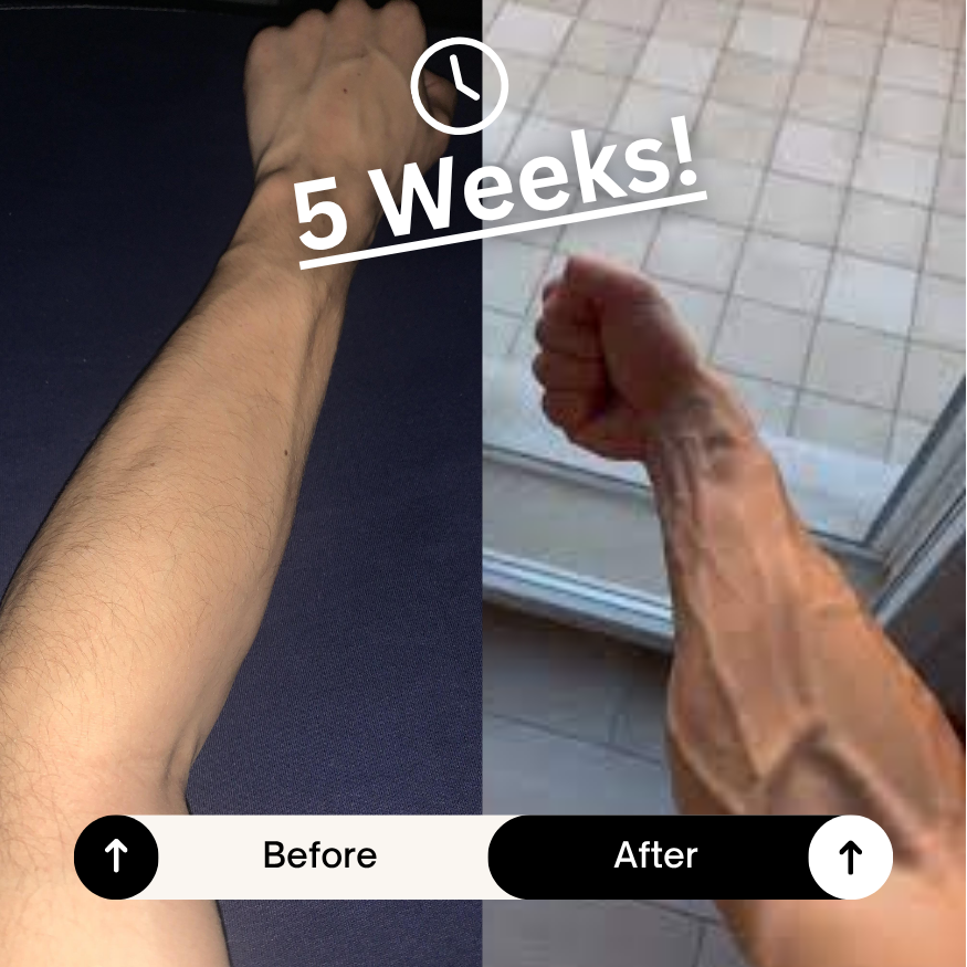 Most users notice visible vascularity and strength improvements within 3–5 weeks of consistent use. Train just 10–15 minutes a day, and watch your forearms harden, veins rise, and grip strength skyrocket.